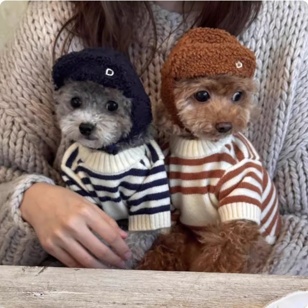 Style: Casual pet sweater with bear stripes.