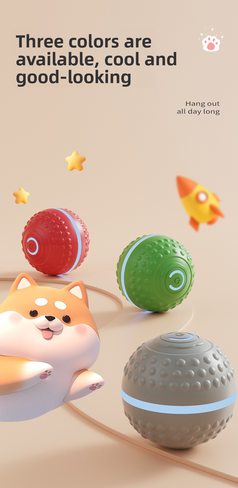 Smart interactive design: Features automatic rolling and bouncing movements to engage pets in active play.
