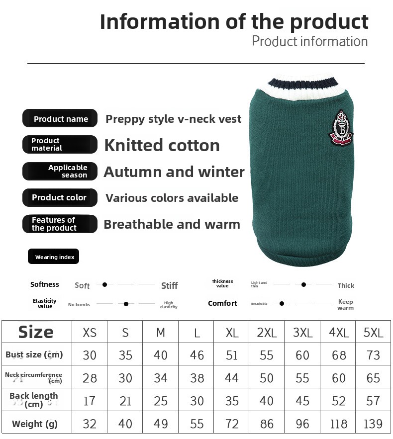 Knitted Vest: Soft and comfortable knitted fabric for pets.