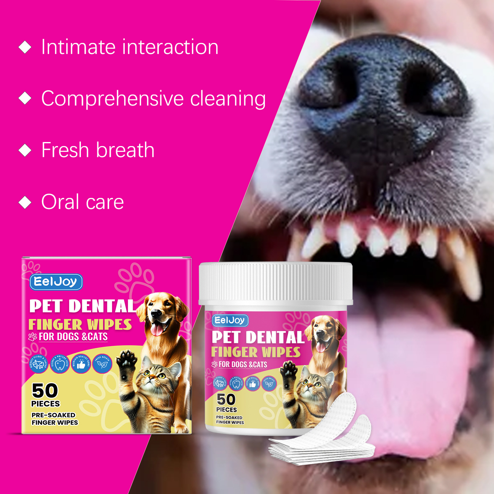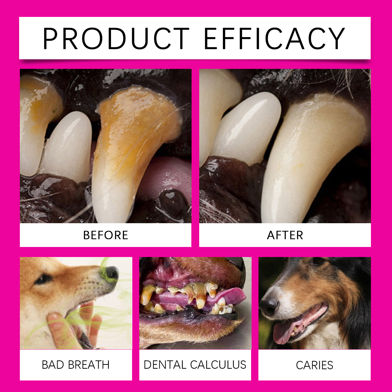Tartar Removal: Effectively cleans pet teeth, removing tartar and tooth stains.
