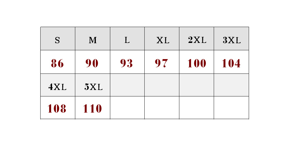 Sizes: S, M, L, XL, 2XL, 3XL, 4XL, 5XL.