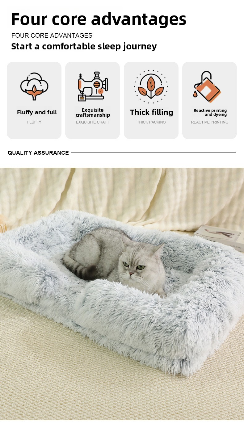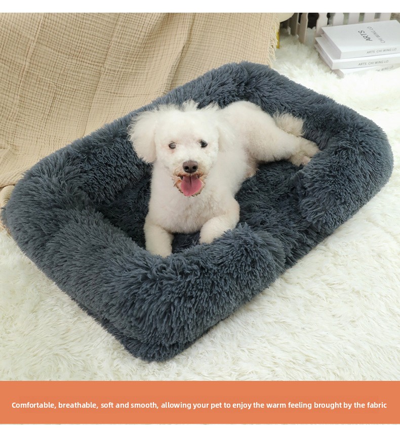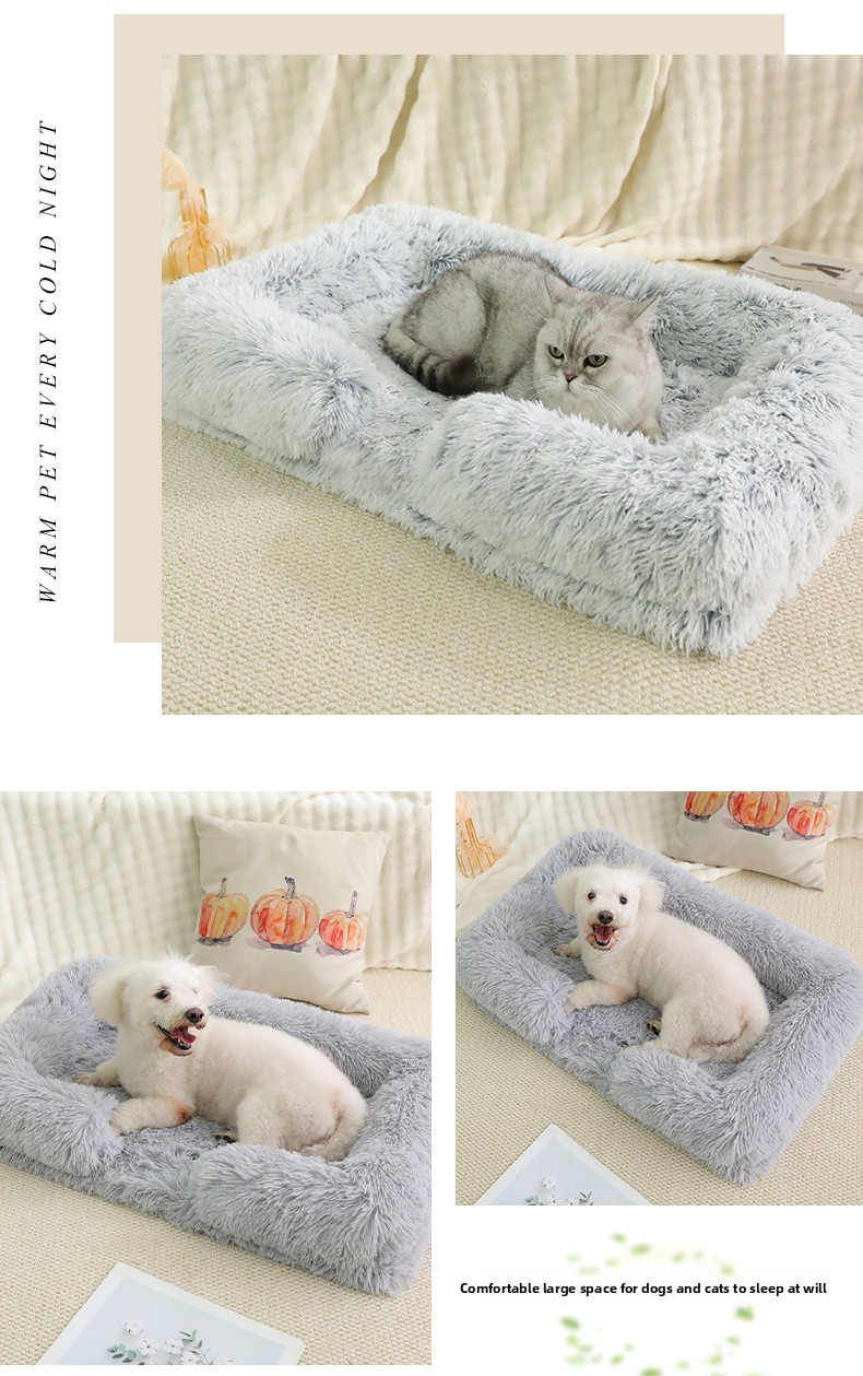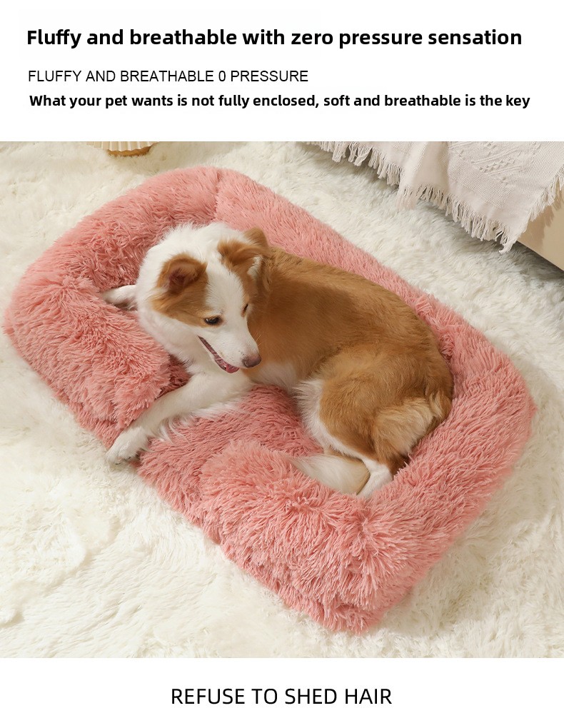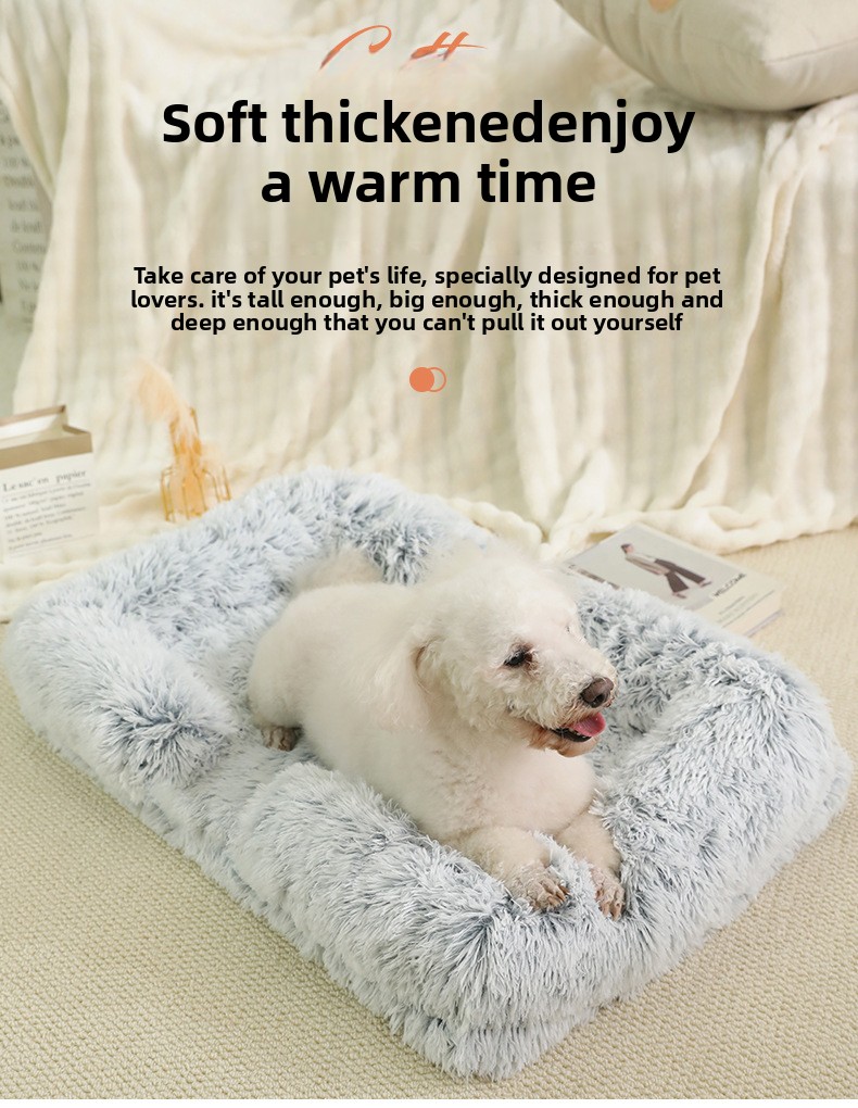 Plush Material: Soft and comfortable long plush fabric for pet warmth.
